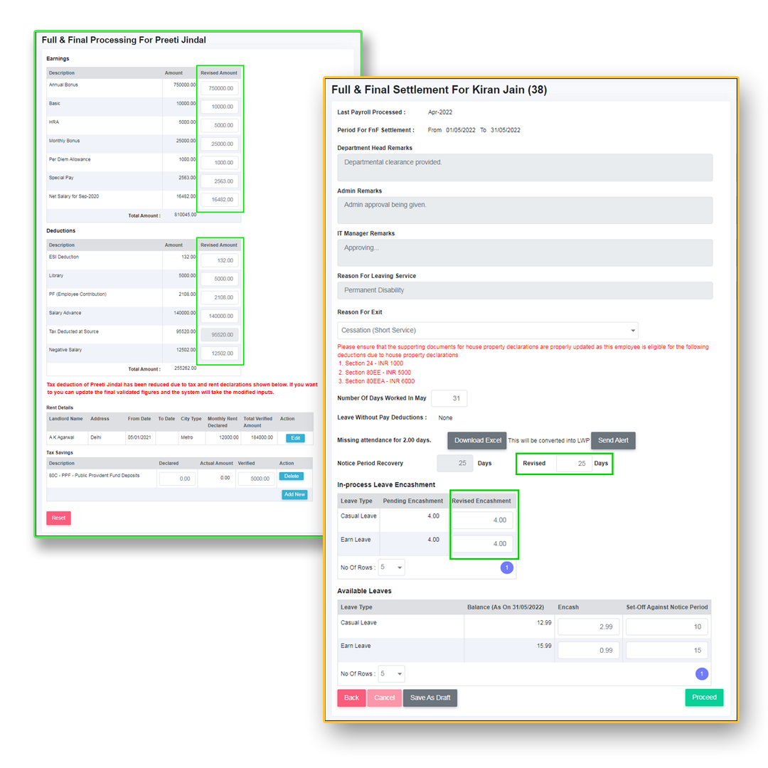 • Recovery of excess salary paid in case the last working day is updated from a back date.