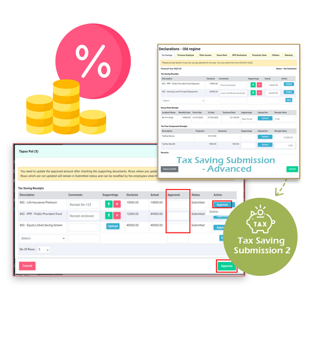 • Verification of tax saving proofs ensuring that excess tax is not deducted.
